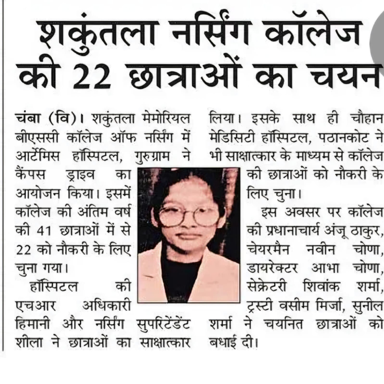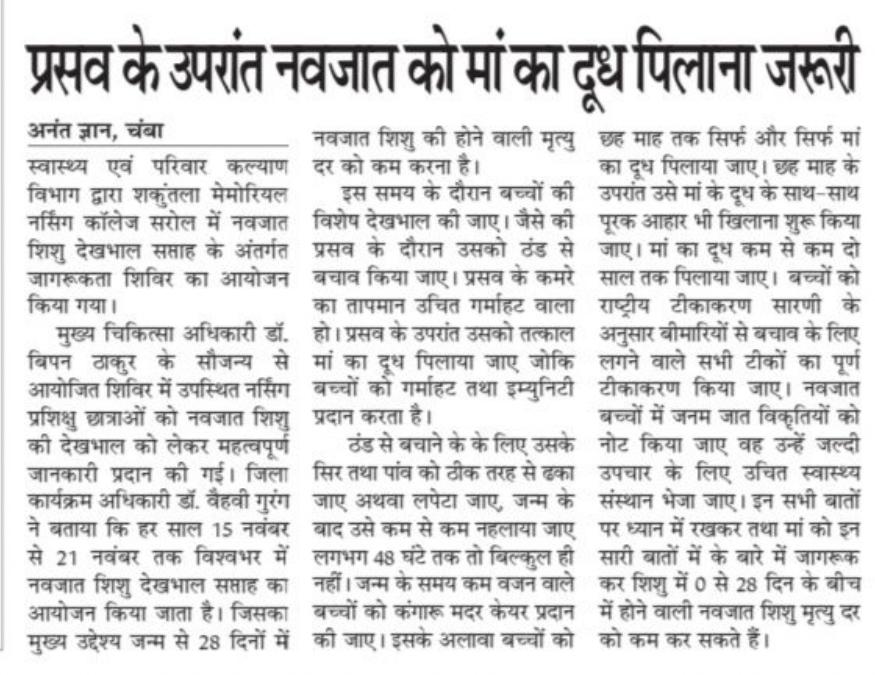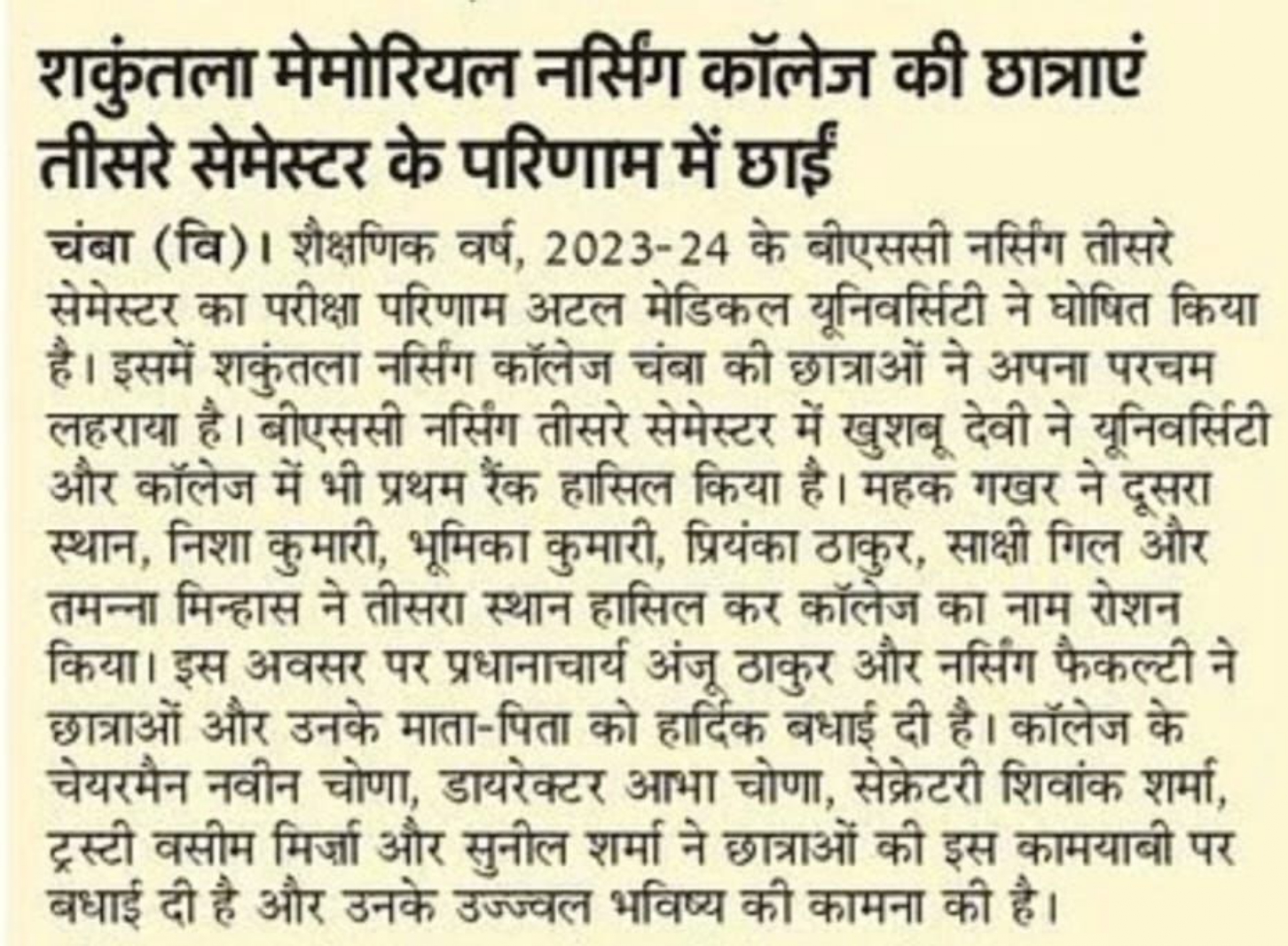 Caring is the essence of Nursing Village Sidhpura, P.O. Sarol, Near Govt. Polytechnic, Teh. & Distt. Chamba(H.P.)-176310